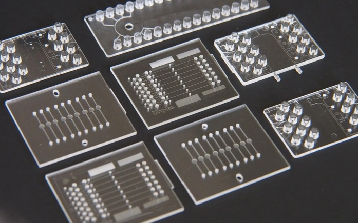 如果需要批量生產(chǎn)塑料芯片,可以先用金屬模具(通常是鎳或鋼)加工出微通道結(jié)構(gòu),然后將熱塑性材料(如PMMA、COC)在高溫高壓下壓制成型,或直接注塑。優(yōu)點是產(chǎn)量高、成本低;缺點是模具制作周期長、前期投入大。